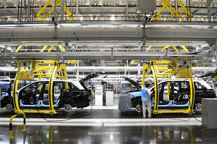這是在位于重慶市兩江新區(qū)的賽力斯汽車超級工廠智能化生產(chǎn)作業(yè)現(xiàn)場(2024年6月7日攝)。(新華社記者 王全超/攝)