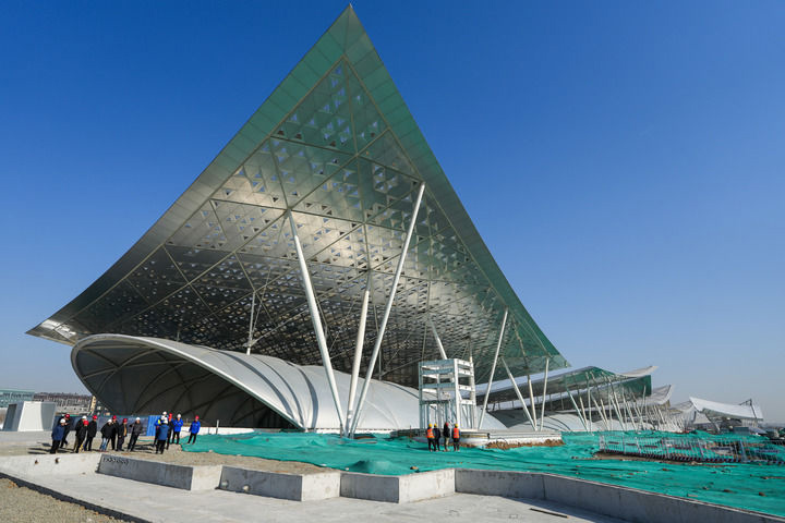 北京城市副中心站綜合交通樞紐工程和“京帆”屋蓋(2025年2月26日攝)。(新華社記者 鞠煥宗/攝)