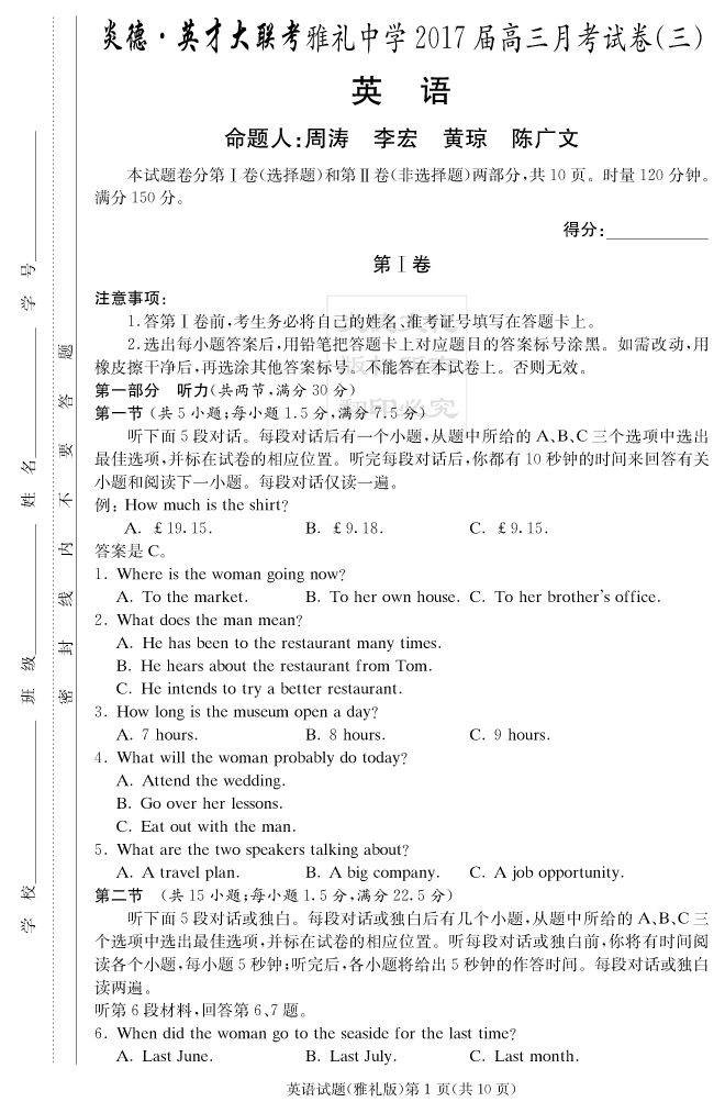 | 資源類別: | 名校月考 | |