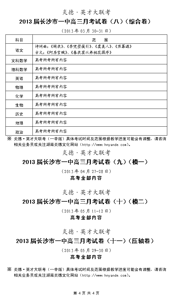 來源:炎德文化點(diǎn)擊:2012-09-11 10:55:34收藏本文當(dāng)前位置:考試范圍 長沙一中 高三 正文