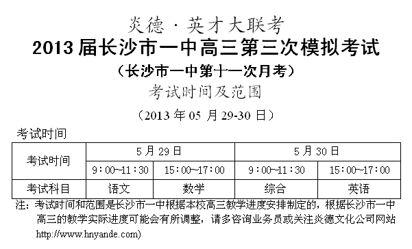 炎德英才大聯(lián)考長沙市一中2013屆高三第十一次月考考試時(shí)間