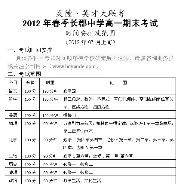 來源:炎德文化點(diǎn)擊:2012-04-06 17:17:48收藏本文當(dāng)前位置:考試范圍 長郡中學(xué) 高一 正文