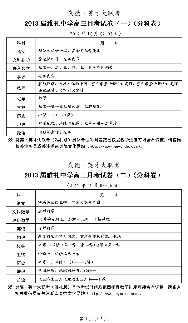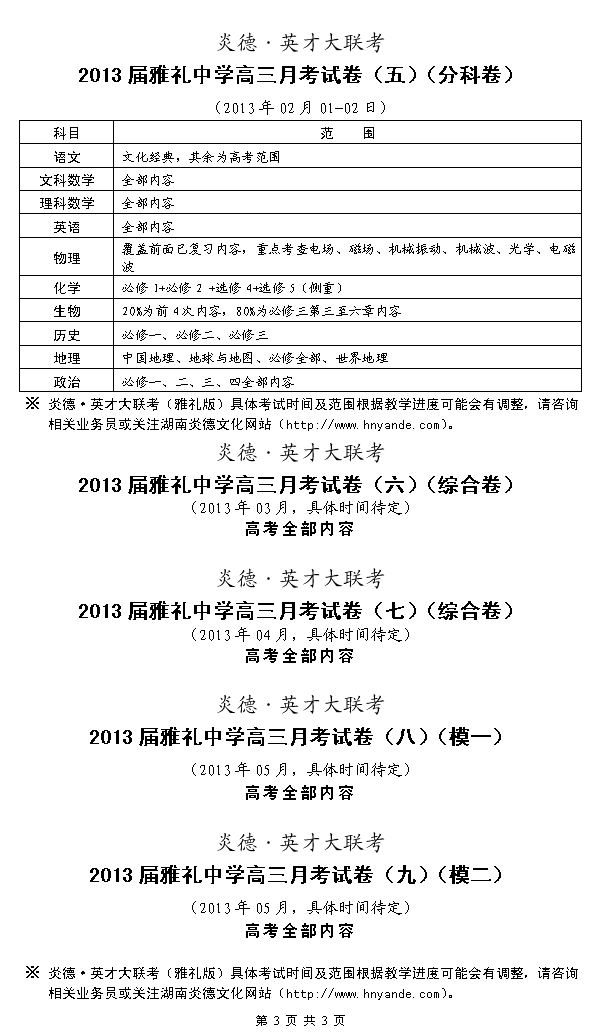 來(lái)源:炎德文化點(diǎn)擊:2012-09-11 14:46:11收藏本文當(dāng)前位置:考試范圍 雅禮中學(xué) 高三 正文