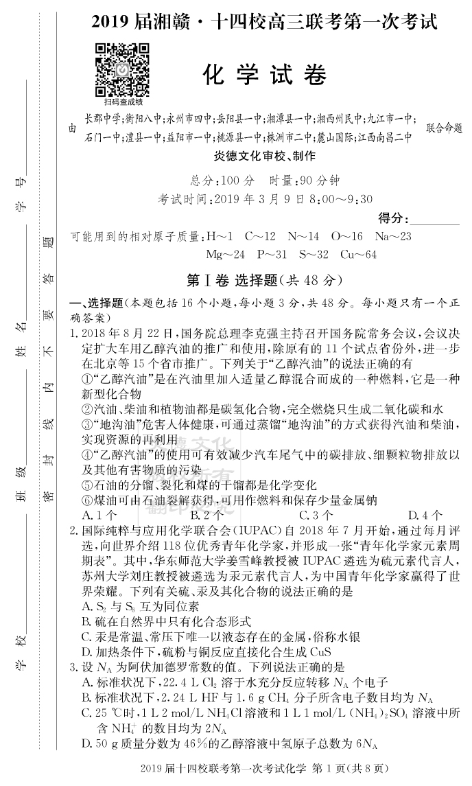 2026高考總復習單元同步滾動測試卷·化學
