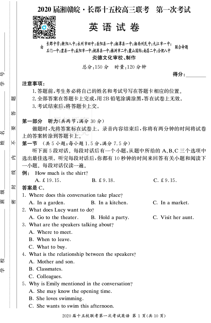 下一篇:【語(yǔ)文】炎德英才大聯(lián)考2020屆長(zhǎng)郡中學(xué)高三7次月考(十五校聯(lián)考一)
