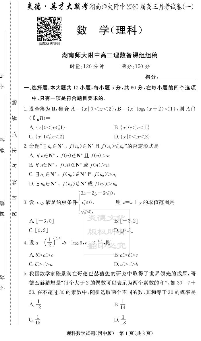 下一篇:【歷史】炎德英才大聯(lián)考2020屆師大附中高三1次月考