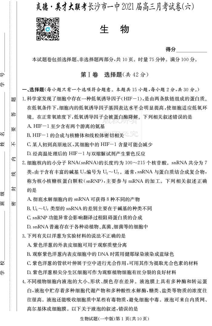 | 資源類別: | 名校月考 | |
