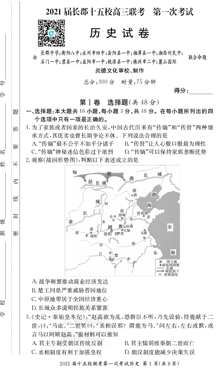 2026長郡中學新高考考前小題沖刺訓練·歷史