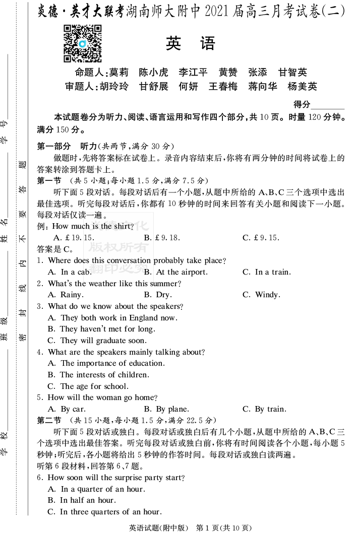 | 資源類別: | 名校月考 | |