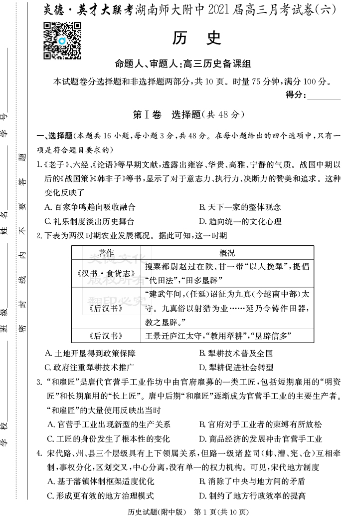 2025名師導學·名校名卷經(jīng)典試題匯編·歷史