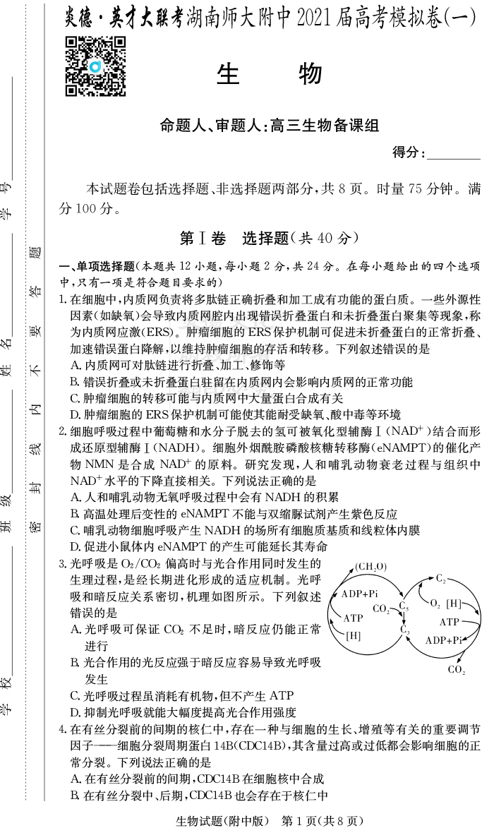 | 資源類別: | 名校月考 | |