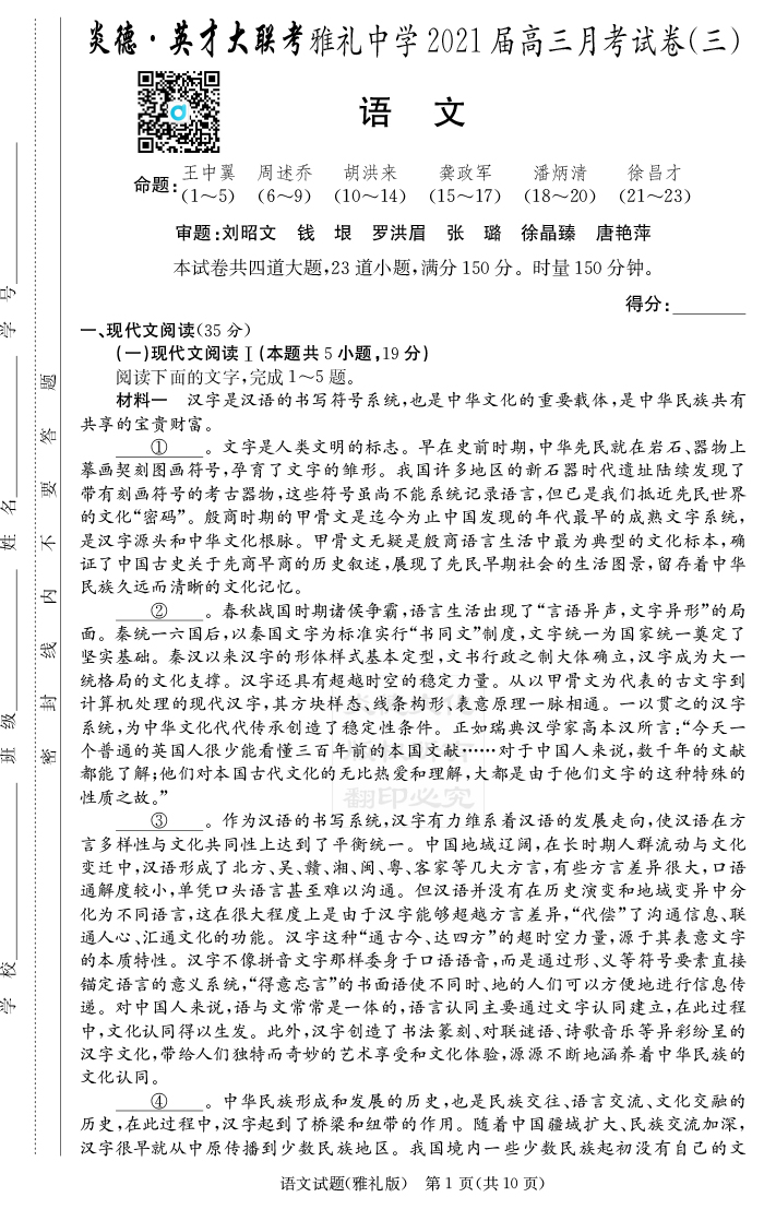 | 資源類別: | 名校月考 | |