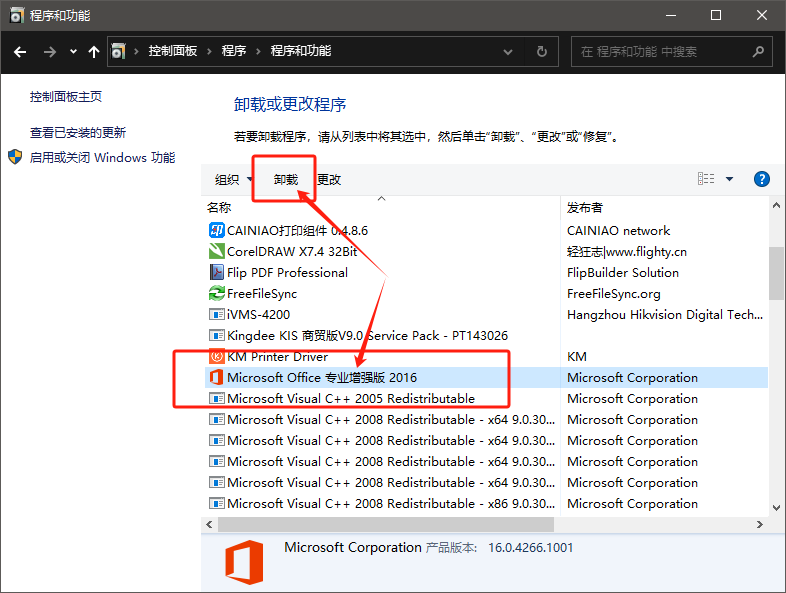 2. 找到Office的相關(guān)軟件,進(jìn)行卸載