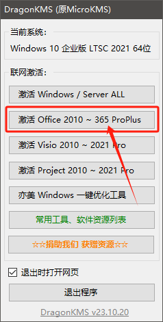 記得關(guān)閉殺毒軟件,啟動(dòng)激活軟件。點(diǎn)擊激活 Microsoft Office 運(yùn)行激活程序