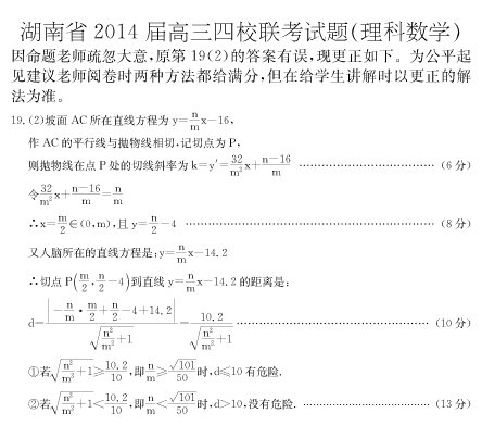 四校聯(lián)考理科數(shù)學(xué)19題第2小題答案勘誤