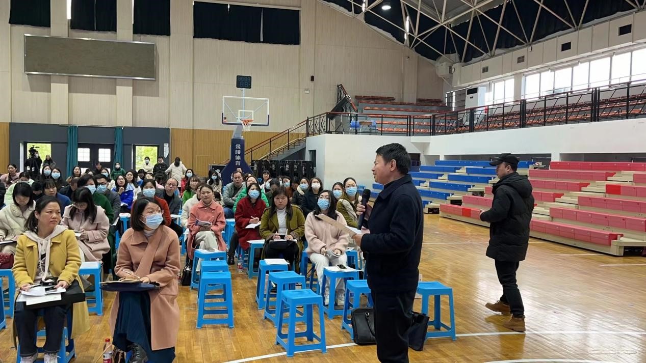 長(zhǎng)沙市六中體育館內(nèi),郭偉、李吉英、張旭娟三位老師對(duì)英語(yǔ)學(xué)科進(jìn)行精準(zhǔn)講解,對(duì)2023屆高考英語(yǔ)命題方向作出指引。