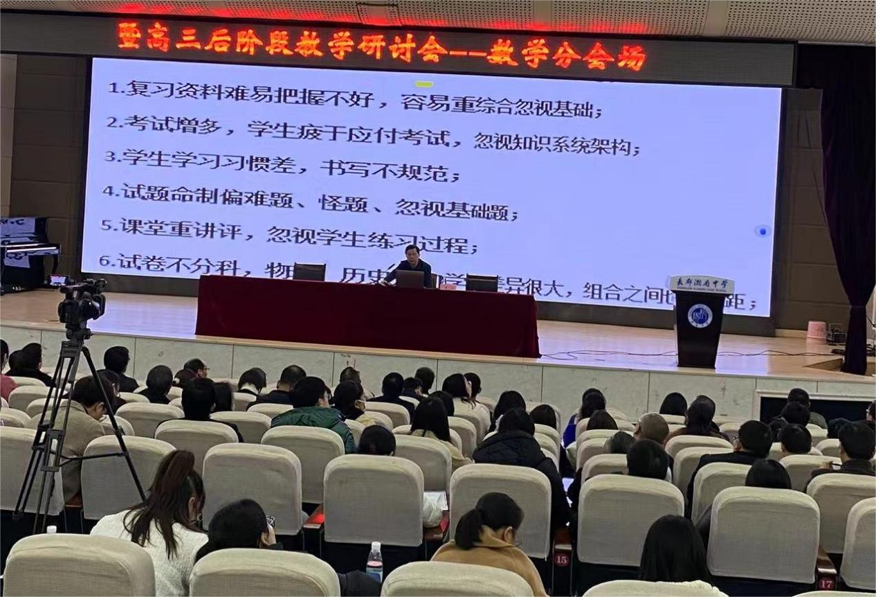 數(shù)學(xué)學(xué)科分會(huì)場(chǎng)位于城南的長(zhǎng)郡湘府中學(xué)逸夫樓,數(shù)學(xué)研討會(huì)由長(zhǎng)郡湘府中學(xué)教科室主任張作亮主持,來(lái)自湖南及江西共400余名高三數(shù)學(xué)教師參加了此次研討會(huì)。