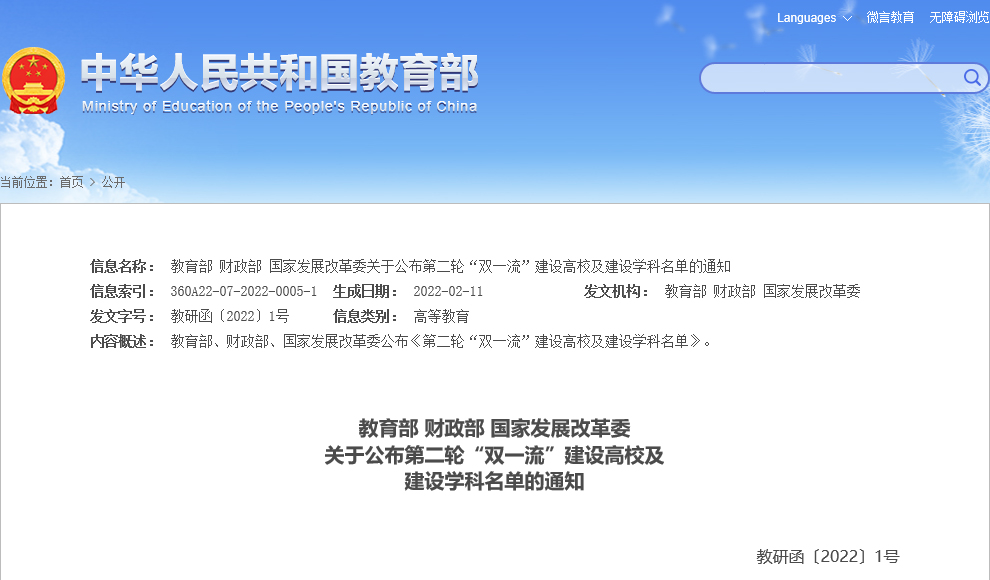 第二輪“雙一流”建設(shè)高校及建設(shè)學(xué)科名單