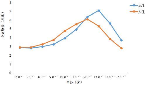 身高和體重是反映學生生長發(fā)育和營養(yǎng)狀況的基礎(chǔ)指標。十年來,各年齡段男女生的平均身高和體重水平逐年升高。其中,13歲的男生平均身高和體重增量最多,達到7.5cm和6.6kg;女生為12歲增量最多,身高和體重增量分別達到6.3cm和5.8kg,增長速度均高于同年齡段全國農(nóng)村學生的平均水平。