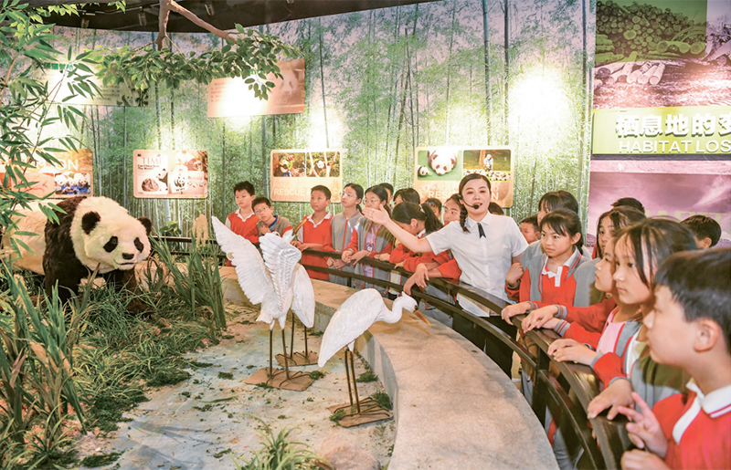 新時(shí)代以來(lái),教育系統(tǒng)著力推動(dòng)思想政治教育、專業(yè)教育與創(chuàng)新教育、社會(huì)實(shí)踐、志愿服務(wù)等的融合。圖為2024年5月17日,學(xué)生們?cè)诮饕素S熊貓科技館開(kāi)展“行走的思政課”主題科普教育活動(dòng),增強(qiáng)節(jié)約資源和保護(hù)自然環(huán)境意識(shí)。(人民圖片 周亮/攝)